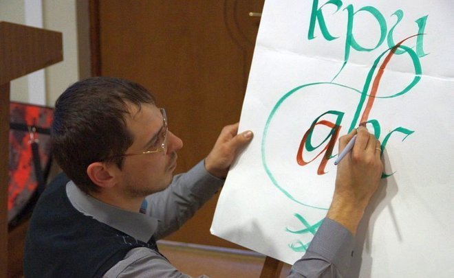 One of the ways to develop a child's talent is calligraphy. Vladislav Baranov gives classes on this art. He showed the listeners of the lecture the examples of work by his students, he drew Italian, English fonts.