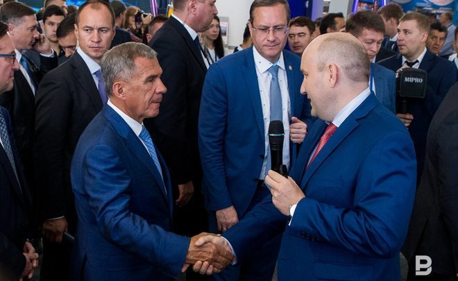 The 25th exhibition 'Oil, gas. Petrochemistry' has received 170 participants from 10 countries. All of them displayed in three pavilions, but the main pavilion was No. 5, where the stands of the largest enterprises opened. It was from here Tatarstan President Rustam Minnikhanov, together with Head of the Federal Service for Environmental, Technological and Nuclear Supervision Alexey Aleshin, members of the government of the Republic of Tatarstan, heads of enterprises and organizations of the petrochemical industry, began to study the expositions. Near the main entrance there was a large stand of TAIF Group, where the big ''three'' of the holding was located, including the oil refining company TAIF-NK. General Director of the company Rushan Shamgunov, who made a presentation of the company, met the guests of honour here.