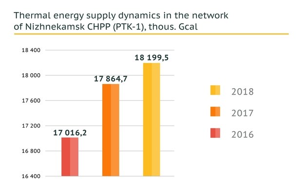 Heat supply to the grid from Kazan CHPP-3 and Nizhnekamsk CHPP (PTK-1) in 2018 amounted to 21,3 million Gcal, which is by 2% more than in 2017