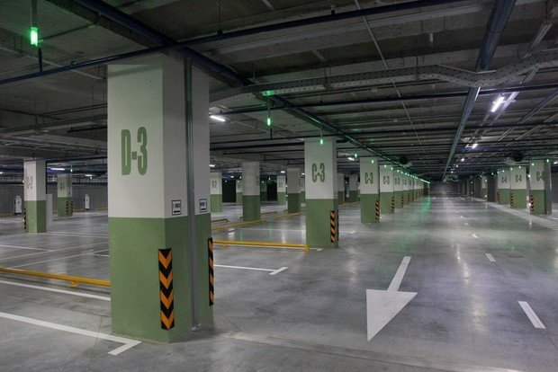The total car park area is 52,868 square metres. However, the area of the territory is five times smaller. Four levels and a small underground area allow leaving 957 cars on a comparably small space. The outdoor space is designed only for people with disabilities and excursion buses.