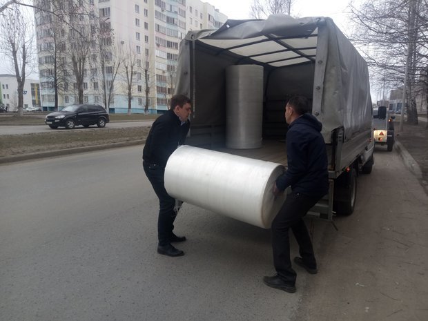 Nizhnekamskneftekhim handed over another 20 rolls of non-woven material produced at Polimatiz subsidiary enterprise to the city. It is possible to produce more than 100,000 medical masks from this material. By the way, the length of one roll is 3 km, and the production of one mask requires about 50 cm of fabric. In addition to the material, petrochemicals provided rubber bands for sewing masks.