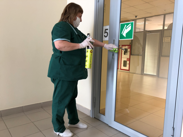 Six health points, in which four nurses and four paramedics work, are equipped with necessary medicines and equipment for both daily use and emergency aid. The health posts are disinfected daily every two hours: wet cleaning, UV light and airing, door handles are wiped with a disinfecting solution.