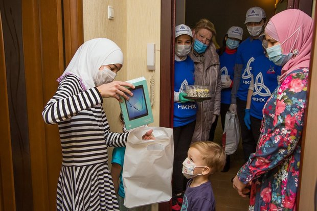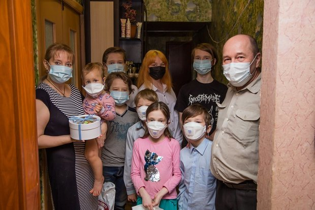 During these tough times, Nizhnekamskneftekhim gave the Mustayevs a helping hand. A delegation of the enterprise consisting of volunteers and the trade union’s workers went around to them to give the children a tablet, sweets, two food baskets and medical masks. The packages were given in the corridor not to subject the family to the risk of contracting COVID-19. They all had gloves and medical masks on.