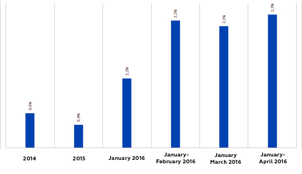The economic results of April 2016 indicate the continuation of positive trends in the economy of the Republic