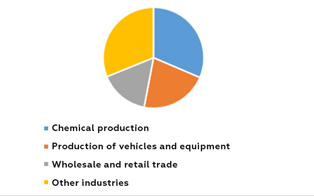 As you can see on the chart, nearly 2/3 of the total profit are given by only 3 industries: oil production, chemical production, and the production and distribution of electricity, gas and water