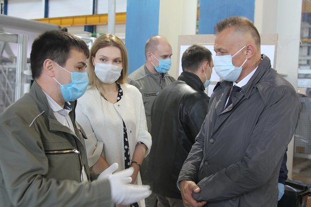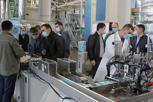 A month ago, the equipment for manufacturing medical masks was delivered to Polymatiz JSC from the Chinese city of Tianjin. A day later, the automated line was installed, and the production of the products that are scarce for the whole country began. By the way, a number of other large Tatarstan enterprises purchased the same equipment, but only the subsidiary of Nizhnekamskneftekhim PJSC demonstrated maximum and uninterrupted performance. On 14 May, Deputy Minister of Industry and Trade of the Republic of Tatarstan Aleksey Savelchev, together with representatives of other companies that produce medical masks, visited the workshops of Polymatiz and learned the secrets of successful work.
