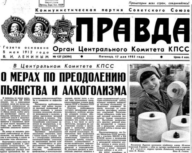 An anti-alcohol campaign began in the USSR 35 years ago, on 17 May 1985. A resolution of the government On Measures to Combat Binge Drinking, Alcoholism and Eradicate Illegal Moonshine Production was published on that day. The document envisaged strict fines for alcohol drinking at work and in public places; sale of wine and vodka only in specialised stores after 14 o’clock, and criminal liability was imposed for making moonshine. It was planned to stop wine production by 1989, vodka production annually reduced by 10%. The campaign ran from 1985 to 1987 — and thanks to it the traffic accident rate decreased (from 47,000 in 1984 to 39,000 in 1986) and natality went up. At the same time, the production of illegal alcoholic drinks increased, as a result of sugar, sweets, eau de cologne disappeared from shop shelves, and the youth became interested in drugs. Within the project dedicated to the 35th anniversary of the beginning of Perestroika, Realnoe Vremya discussed the topic of the anti-alcohol campaign and its failure with economist Sergey Khestanov.