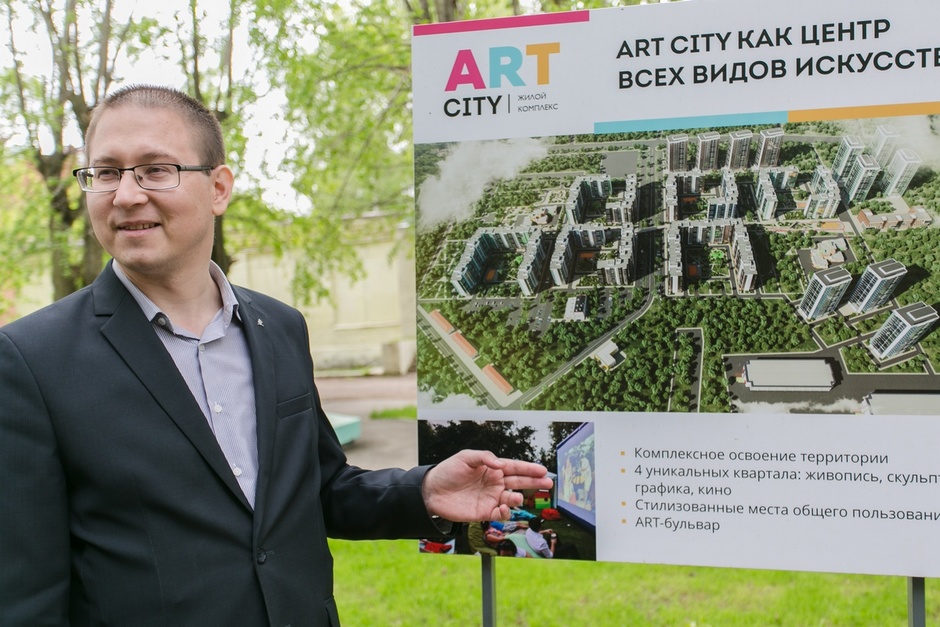 The name 'ART City' is connected with the conception of the design of four quarters, from which the complex consists. An apartment, a house, a yard, the entire residential complex represent the objects of art — painting, sculpture, graphics, cinema. What does that imply? The paintings on the walls, sculptures in public areas, an outdoor cinema.