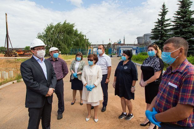 The guests received mandatory introductory safety instructions, medical masks and gloves before the start of the tour. After that, the heads of rural settlements were shown the layout of the future production and told about the advanced technologies applied at the plant.