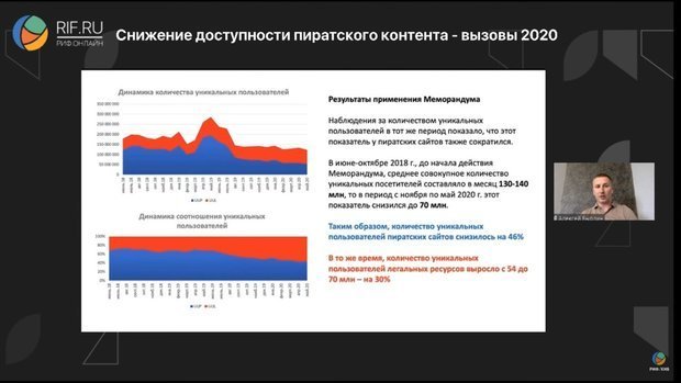 Earlier at the Russian Internet Forum, Andrey Byrdin, the director general of Internet Video association, summed up the results of the memorandum and the fight against piracy in general. He referred to this process as “reducing the availability of pirated content”, probably emphasising that it is not yet possible to combat piracy.