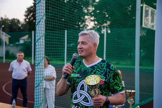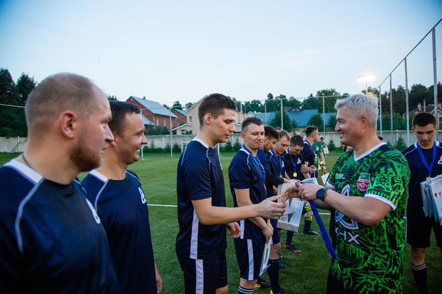 Then an award ceremony began. All players received memorable gifts from the Tatarstan Olympic Council, medals and NKNK cups. Moreover, the best players got individual prizes — Maksim Shuysky, director of the isoprene monomer plant, and the young team’s goalie Ildar Khuziakhmetov.