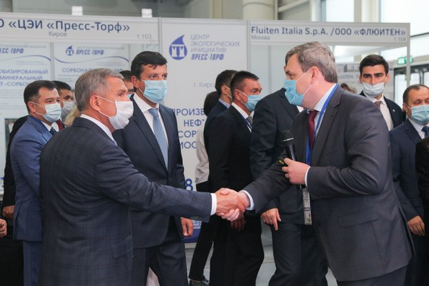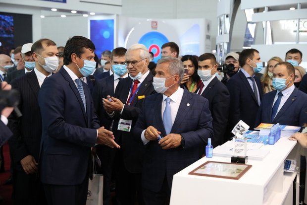He also reminded the audience that the coronavirus that caused so many problems in the first half of the year was still nearby and recommended the guests not to neglect personal protective equipment and keep a distance. By the way, one of the expositions of the already 27th specialised exhibition Oil. Gas. Petrochemistry, which traditionally takes place during the forum, is represented by companies that made a considerable contribution to the prevention and fight against the spread of COVID-19. And Polymatiz — Nizhnekamskneftekhim PJSC’s subsidiary — became one of the brightest exhibitors. It is one of Russia’s few producers of nonwoven fabric including for medical masks and single-use hazmat suits and was the first in the republic to set up mask production, which suddenly became a number one commodity.