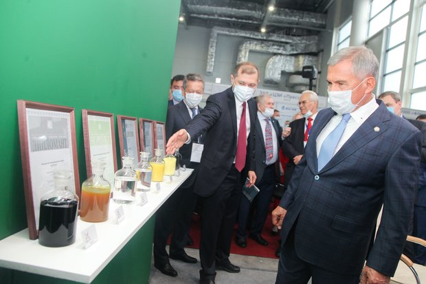 “While I will be making a presentation, dear guests, you can use the antiseptic made at NKNK. And we got a certificate of compliance as a disinfectant. This is why I think it is the safest stand,” Director General of Nizhnekamskneftekhim PJSC Ayrat Safin welcomed high-ranking guests looking over the expositions.