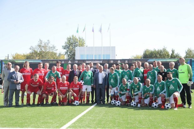 And then, at the symbolic suggestion of Rustam Minnikhanov, the match with the participation of famous athletes began. Spartak legend and former Russian national team coach Oleg Romantsev managed the team of veteran Muscovites. Together with him, on the field there were football stars: Vagiz Khidiyatullin, Yury Gavrilov, Yury Kovtun, Ventsislav Khristov, Valery Shmarov, Sergey Shavlo. Andrey Sitchikhin, a pupil of the club, became the captain of Neftekhimik veterans. Sergey Budylin, Ildar Akhmetzyanov and other athletes who passed through the Nizhnekamsk club also joined the team with him.