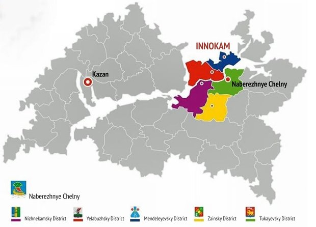 It is in the Kama agglomeration that more than a quarter of the republic's population lives, and enterprises located there produce products that make up 26% of the republic's GRP, 43% of industrial and 17% of agricultural products. As of 2016, the regions included in Innokam account for more than 40% of investments in the Republic of Tatarstan, TAIF Group's enterprises produce 47% of Russian polymers and 69% of all synthetic rubbers in the country, and every second Russian truck rolls off KAMAZ conveyors. Besides, Nizhnekamsk produces 55% of all truck tyres in the country.