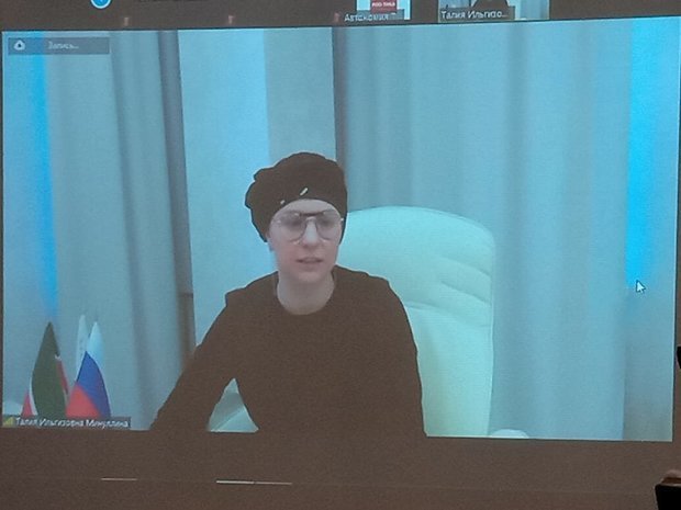 By the way, the head of the Investment Development Agency herself spoke remotely — via Zoom. The official, who periodically surprises the public with her hijabs, put on a headdress and a dark dress with long sleeves that time. The neck and ears remained open.