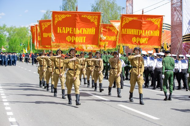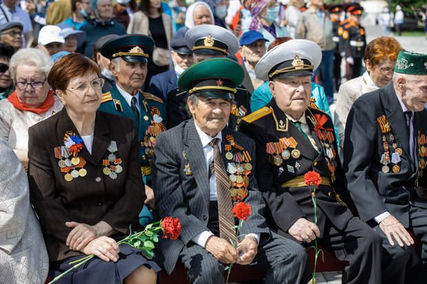 After the meeting with the veterans, the delegation headed towards the monument to Victory to participate in a parade and ceremony. Chairman of the trade union of Nizhnekamskneftekhim PJSC Oleg Shumkov said that the enterprise handed over more than 6,000 Saint George’s ribbons to its employees on the eve of the holiday.
