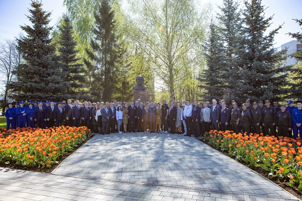 Nizhnekamskneftekhim employees traditionally laid flowers to the bust of the first Director General of the enterprise Nikolay Lemayev.