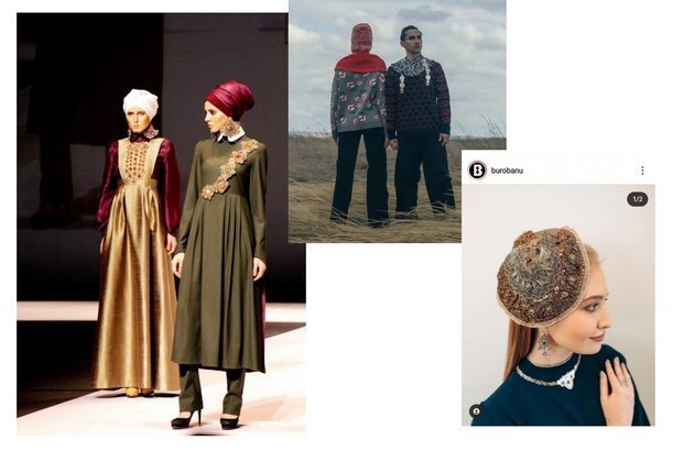It is interesting to note Burobanu, who, despite that they mainly work with traditional forms, when creating the female headdress — kalfak — used an izyu bib as a basis, which is a direct example of the avant-garde trend.