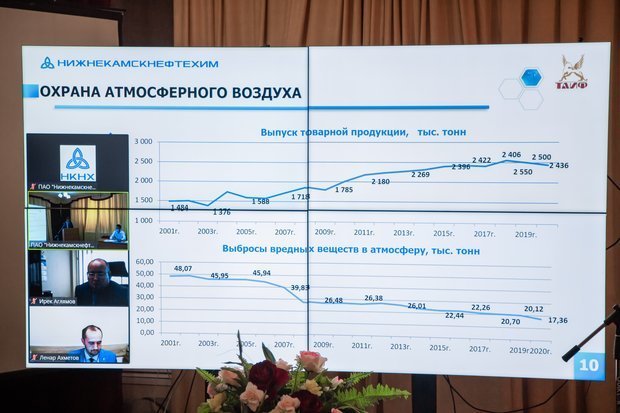 The public hearings were held at the children's ecological and biological centre — a sponsored institution of Nizhnekamskneftekhim. The hall was not crowded, only journalists, representatives of the administration and the petrochemical company were present. Most of the listeners followed what was happening in zoom mode. A total of 163 people registered.