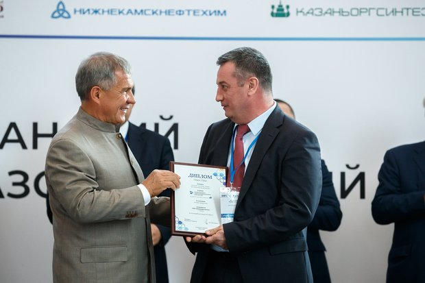 Kazan Federal University, Nizhnekamskneftekhim PJSC, Tatneft PJSC were among the laureates, but Director General of Kazanorgsintez PJSC Farid Minigulov was the first to appear on the stage to receive the deserved award. PC-008UL1 polycarbonate brand was recognised as the novelty of the year in the nomination New Product.