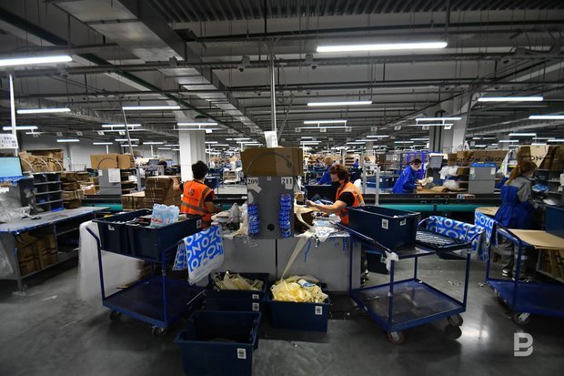 The fulfillment centre is, first of all, a modern logistics enterprise: many processes are automated here, an expensive Vanderlande sorting line works, which separates parcels without human intervention and put them in containers for shipment.