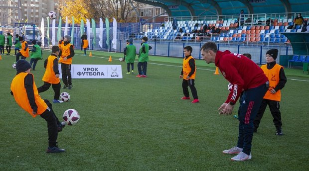 The professionals and children split into two teams and played with the ball for 10 minutes. The team with Sychyov and Bilyaletdinov won. However, this perhaps happened because cheerful Pimenov (with Khlestov on his team) managed to score two own goals. The meeting ended with a photo shoot.