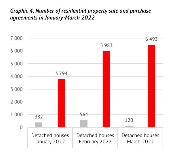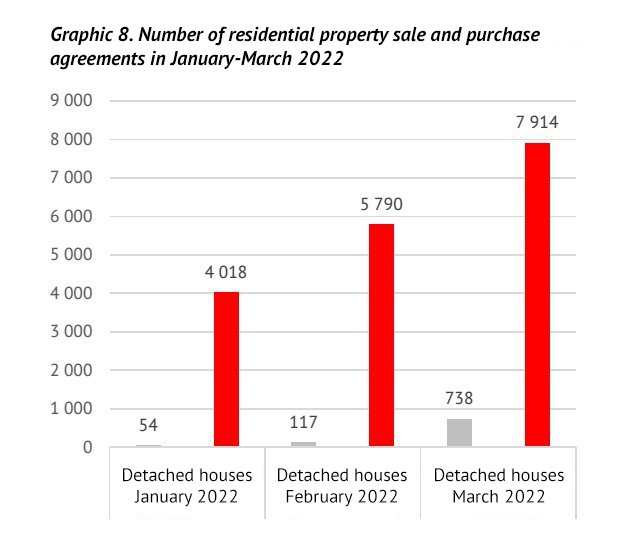 Experts note that buyers started to pay more attention to the layout, materials, noise insulation level, the development of infrastructure. There was seen a rise in the number of deals on detached houses. The number of residential property sale and purchase agreements in January 2022 rose by 27,4% compared to the figure in January 2021.