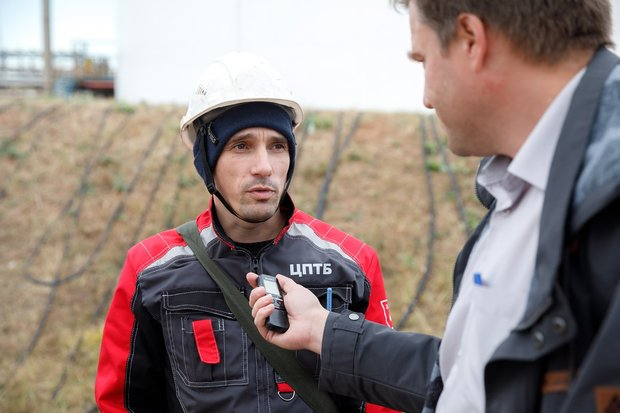 “The oil reservoirs are huge, 67 metres in diameter, 50,000 cubic metres in volume. The heaviest substance goes down and is accumulated during the year. People used to clean the reservoirs: a person in a gas mask with a shovel used to get into the reservoir and other people waited for him at the exit — with wheelbarrows. This is how heavy sediment used to be removed. Everything was primitive. Or the sediment was pumped out. Now a machine does it — a robot that drives inside the reservoir with the help of hydraulics. It has a pump that collects everything from the bottom — water, paraffin deposits, mechanic additives,” Vladimir Lakhomov said.