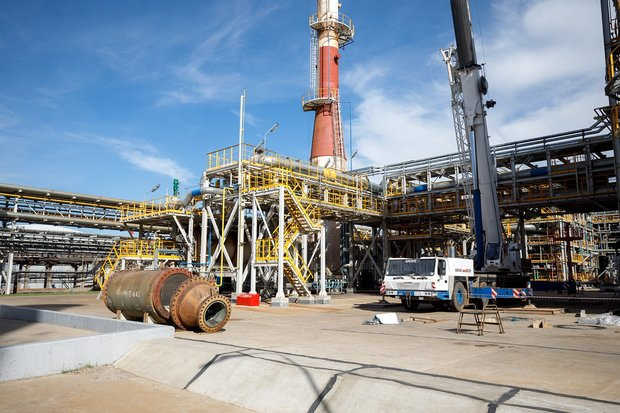 Also, during the repair, the economiser of the waste-heat boiler was replaced. The old one will soon be sent for recycling, and the new one will be ready for launch after being coated with an insulation layer. To dismantle the used equipment and install a new one in place, we had to order a special 400-tonne crane.
