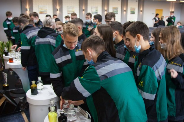 The company makes over 50 products, including feedstock for chemistry and petrochemistry, Euro 5 international eco-friendly motor fuel, diesel fuel, jet fuel, bitumen, PBB, kerosene and so on. Samples of products manufactured by TAIF-NK JSC the students were very interested in were presented here too. One could take glass jars into their hands and take a closer look at every name of the product.