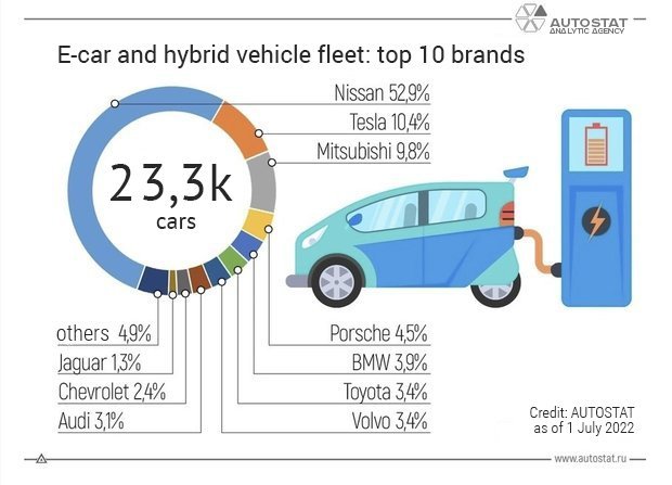The e-car market started to grow because zero duties on e-car imports in Russia have been cancelled since 1 January 2022, therefore importers brought a big amount of cars in advance and sold their stock during the first months. Now there is a trend for a fall, but parallel import can fix the situation as well as the launch of production of Russian e-cars under the brand Evolute, which meet the terms of the state programme — almost a million rubles can be saved there.