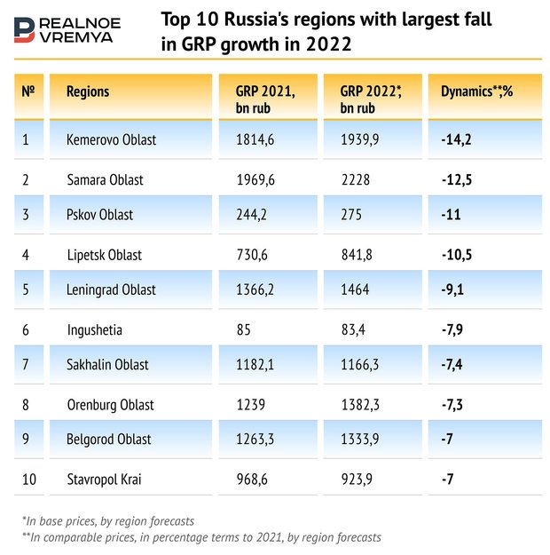 The analytical service of Realnoe Vremya studied the economic indicators of the regions for 2021-2022 and compiled the top of the strongest and most affected regional economies.