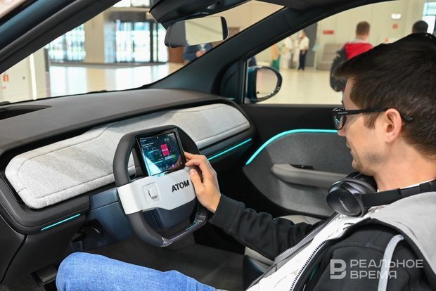 They also showed a prototype of the Russian electric car Atom — the brainchild of the project of Kama JSC by CEO of KAMAZ Sergey Kogogin and businessman Ruben Vardanyan.