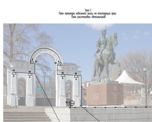 The project provides for outdoor architectural lighting of monuments of monumental art, facades of historical buildings, objects of cultural heritage; illumination of models, power supply of modular toilets. LED lamps are used for outdoor (architectural) lighting. The work is scheduled to be completed in December 2023.