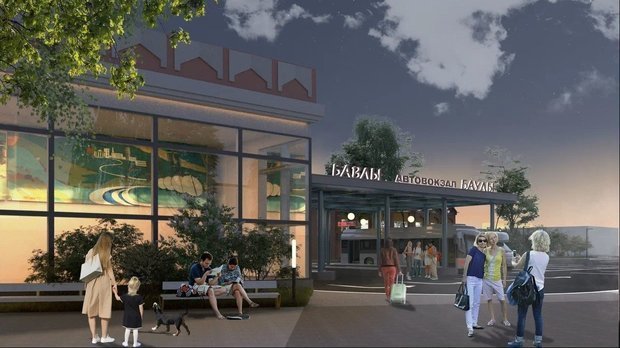 - Station square — information about intercity bus routes, tourist sites of the city and the district will be collected here. The territory of the station square includes waiting areas, a multifunctional area where one can arrange fairs and food court, as well as an area for working at tables in the fresh air.