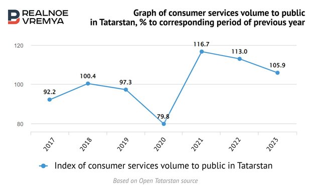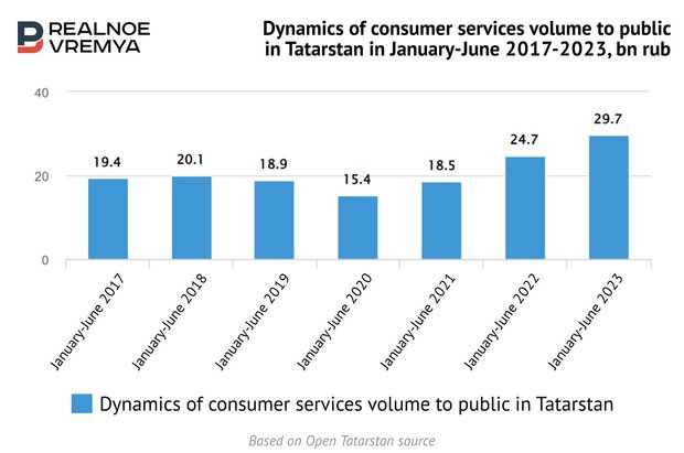 In consumer services, the situation is reversed. The volume of consumer services to the population in Tatarstan amounted to 29,7 billion rubles. A year earlier, it was 24,7 billion rubles.