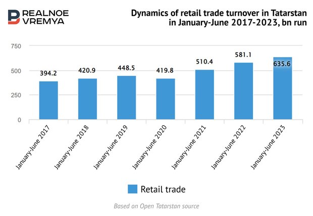 Since 2017, the retail trade turnover in Tatarstan has increased 1,6 times in absolute figures — from 394,2 to 635,6 billion rubles.