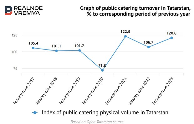 However, the index of public catering physical volume, according to Tatarstan Statistics, increased by 20,6% in the first half of the year. That is, according to official statistics, catering in Tatarstan is actively growing.