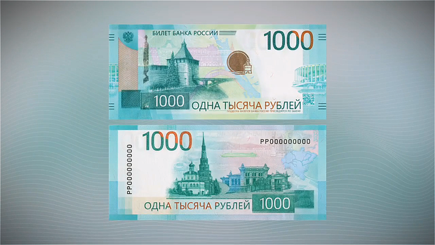 New 1.000 and 5.000 rubles banknotes were presented in Russia. Nizhny Novgorod is pictured on the front side of the first note. The Syuyumbike Tower is on the other side.