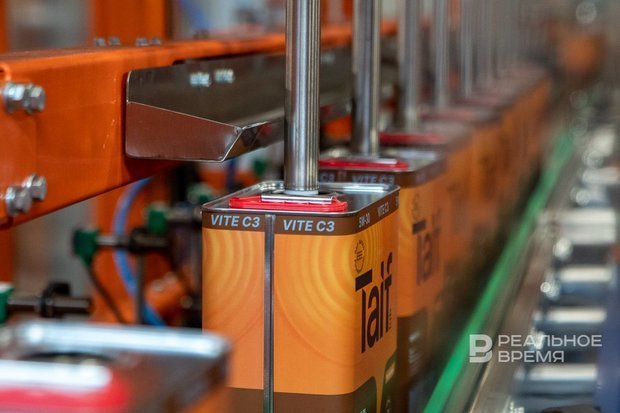 Next — temporary storage tanks and packaging. The shipment of finished products can be carried out in any volumes and methods: from filling into railway tanks, to cubes, barrels and small containers in 20, 5, 4, and 1 liter. By the way, as the director general of the company emphasised, oil is not measured in liters: packing is in kilograms and to an accuracy of a gram.