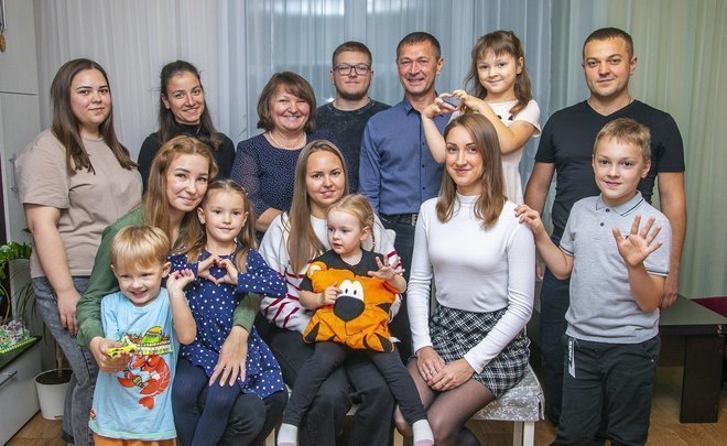Now the Belyaev family has grown to 17 people. The older children have got families, five grandchildren are growing up. It is not always possible to get everyone together, someone is studying, someone is working, but when this happens, Pavel and Olga feel really happy people.
