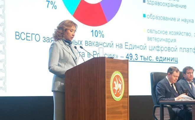 “The year 2023 presented us with serious challenges. And the most important one is to provide personnel for priority sectors of the economy," Elmira Zaripova noted in the report. According to her, currently 49 thousand vacancies remain in the labour market of the republic. The biggest shortage is observed in industry, where 12 thousand vacancies are offered. 3.5 thousand vacancies have been opened in the field of transport, 2.4 thousand vacancies — in healthcare, 1.6 thousand vacancies — in education," she listed.