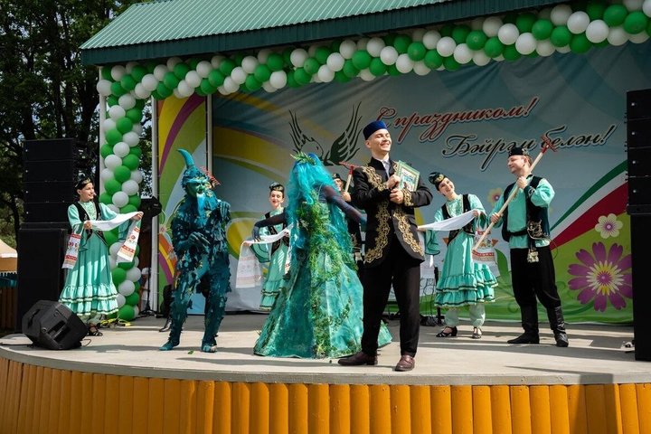 The main theme of the holiday is the preservation of national traditions and cultural diversity. Under the still mild morning sun, the invited artists in Tatar national costumes performed the choreographic composition Prologue.