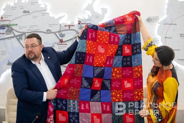 “Your coat of arms depicts a fallen tree, a spruce, is that a symbol of the development of the forestry complex? And the deer, is that in the reserve?” the meeting participants were interested in the meaning of the symbols of the district. “In the Bilyarsk area, there was just abatis when Ivan the Terrible annexed the Kazan Khanate. The felled tree symbolises this abatis. And the coat of arms depicts an elk, which is striving forward, but with an eye on experience,” answered Sergey Demidov. At the end, he gave the guests a handmade blanket depicting the views of the district.