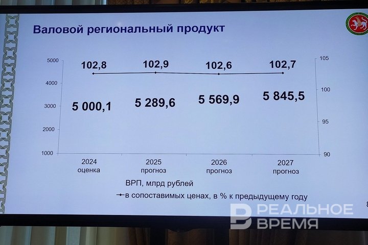 First Deputy Minister of Economy Oleg Pelevin announced plans to ensure the volume of gross regional product at the level of 5 trillion rubles in 2024, specifying that, according to the forecast, in 2025 it should reach 102.9% of the level of 2024, and the industrial production index is projected in 2025 at the level of 103.1% of the previous one.