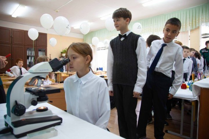 In addition, the children saw with their own eyes microorganisms that eat oil products through a microscope. They live at the enterprise in the local wastewater treatment shop and participate in water purification at the plant.