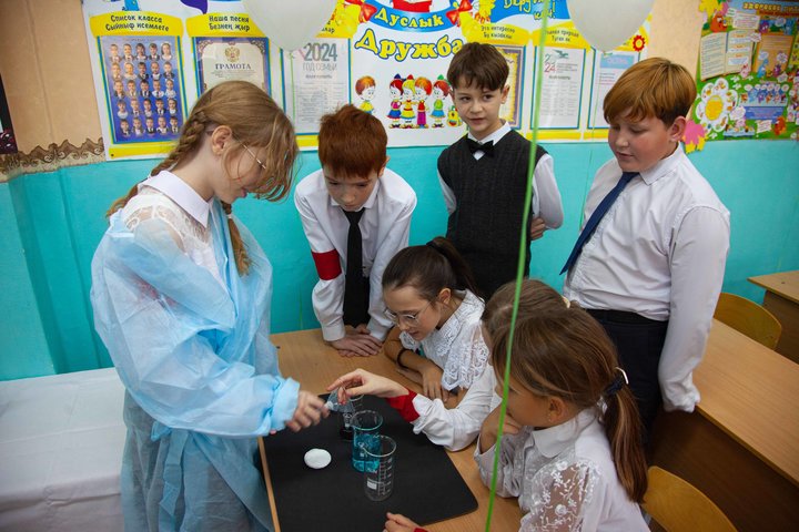 The chemical experiments in Nizhnekamsk schools do not end there. Next week, employees of the sanitary and industrial laboratory will visit the students of School No. 10 to tell them about caring for nature in an entertaining way, as well as to give the children unforgettable emotions and instil a love for science.