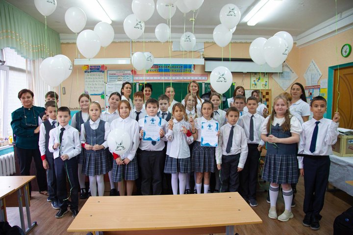 An unusual lesson on environment was held for the students of year four students of School No. 16. The teachers were workers of an oil refinery. A special atmosphere in the classroom was created by balloons and multi-coloured glass flasks placed on the table.