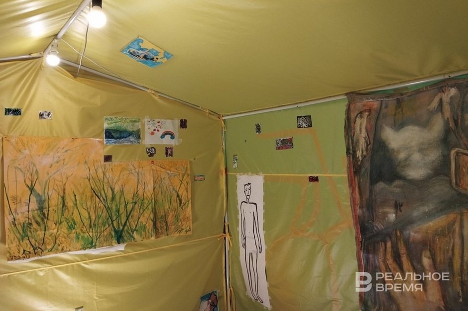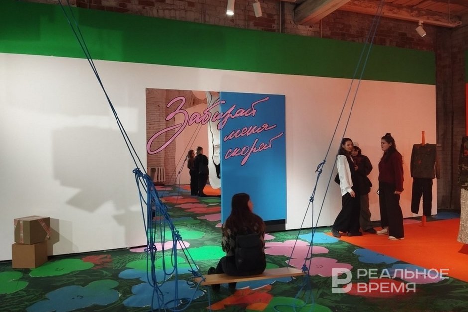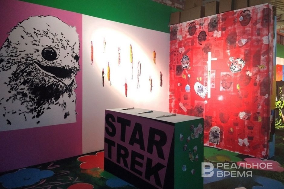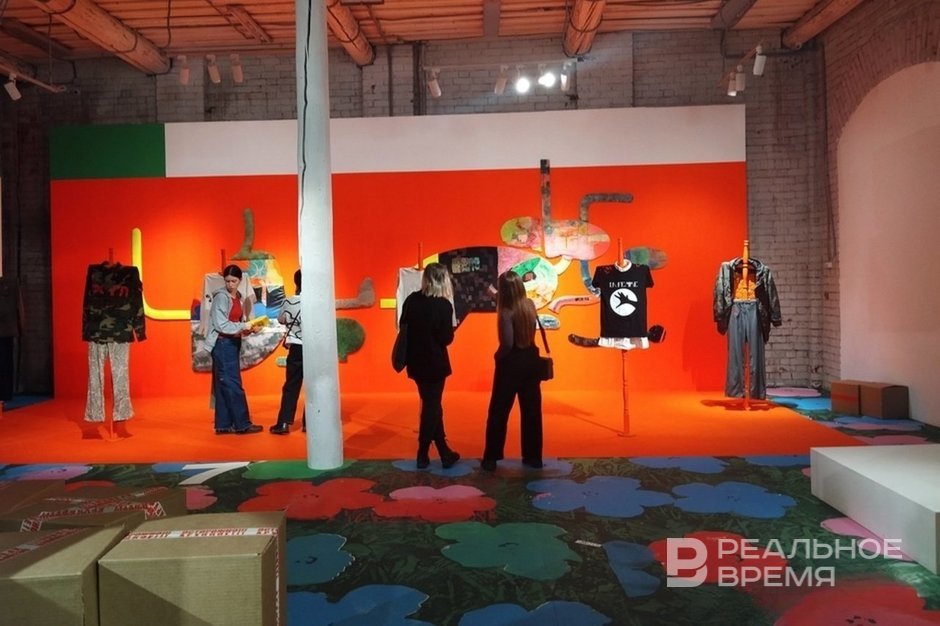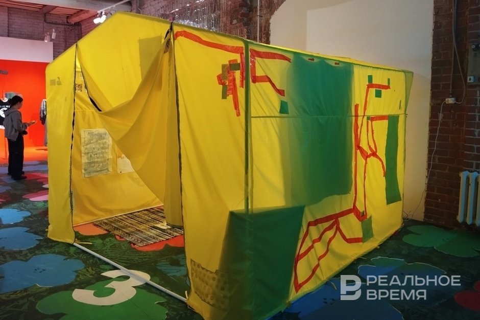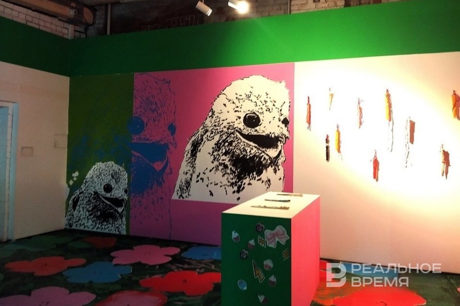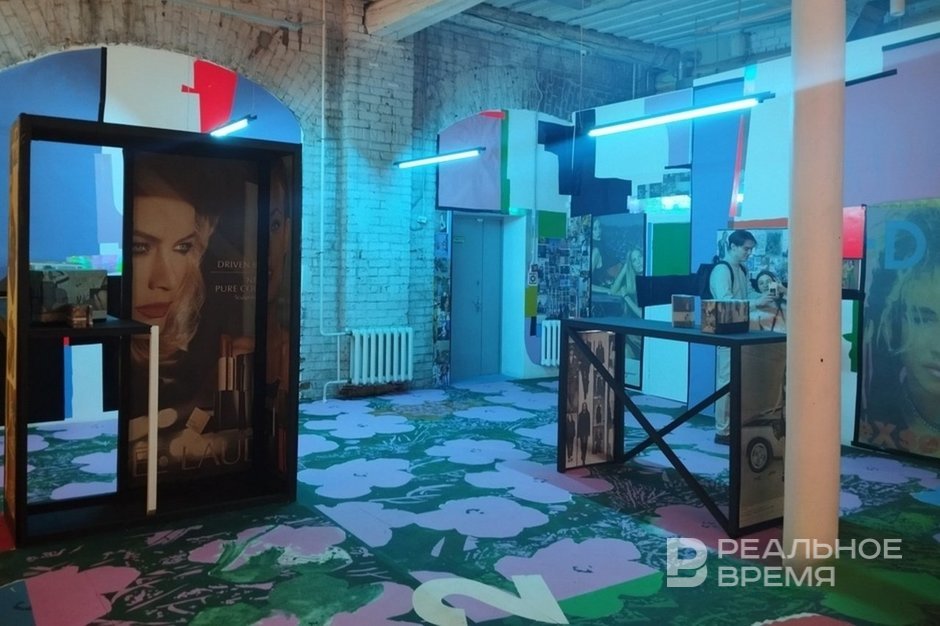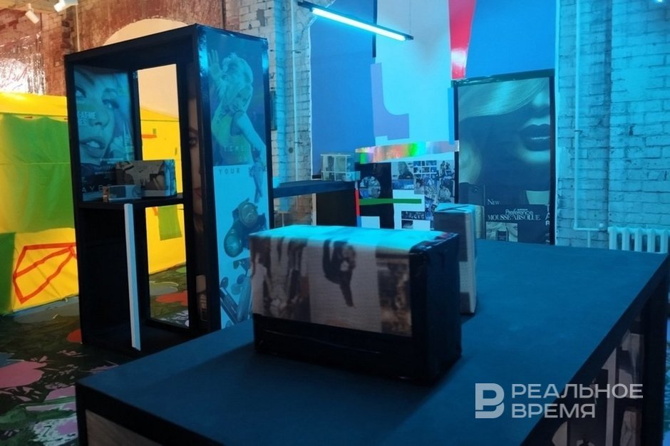 Finally, Sasha Shardak (whose family exhibition is still open in the National Library of the Republic of Tatarstan) occupied a significant part of the exhibition, creating a huge advertising space that imitates the interior.